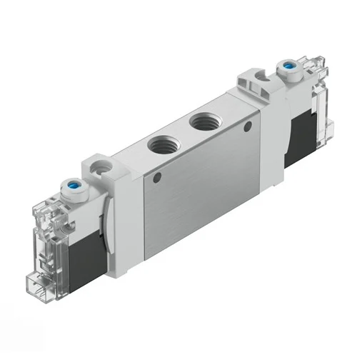 In high-speed packaging equipment, sorting and pushing mechanisms require fast, repeatable actuation to maintain throughput. The 5/2 bistable solenoid valve controls double-acting pneumatic cylinders efficiently using standardized 24V DC signals from the system PLC.